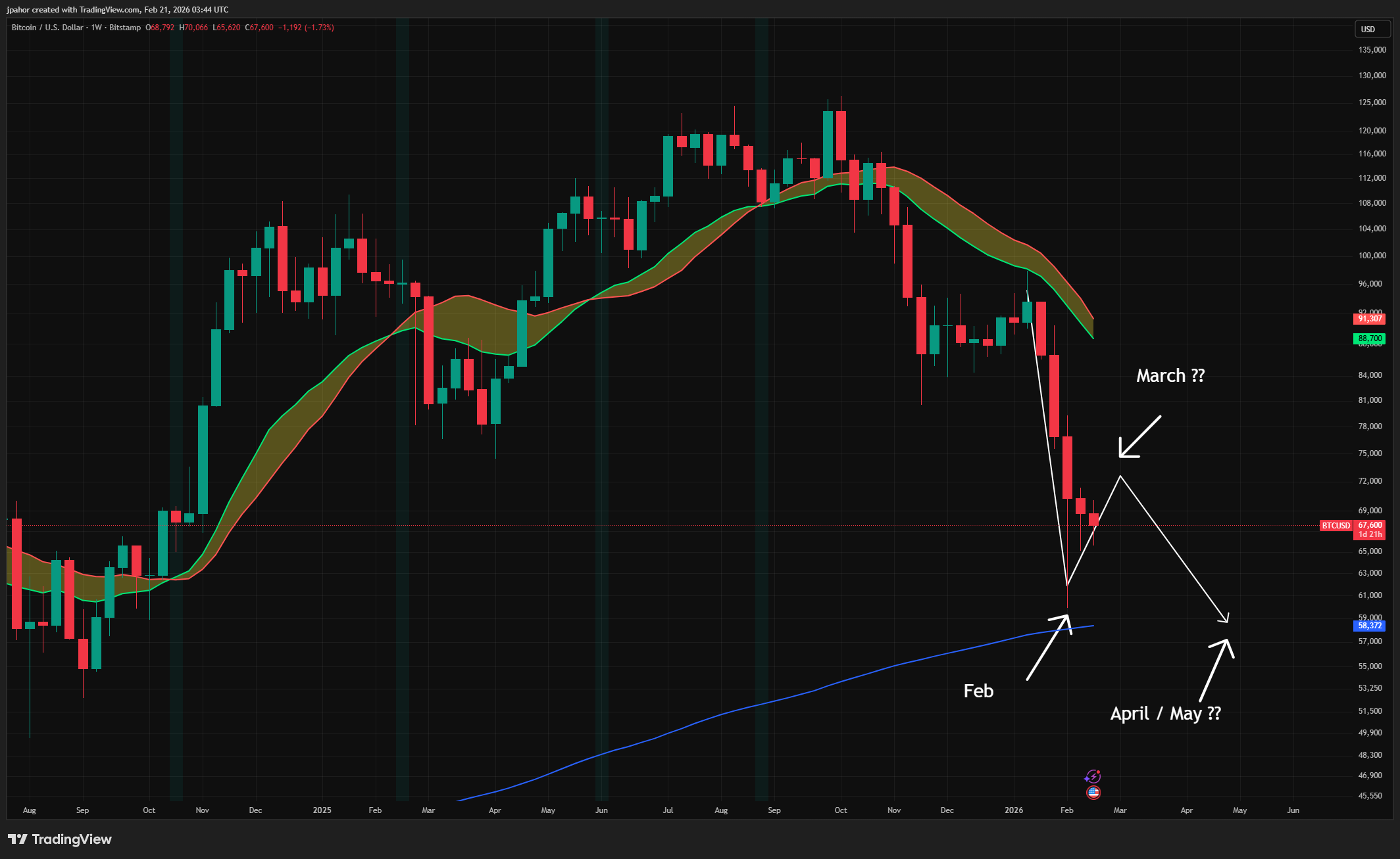 Strategy Update: No buys this week. Mostly sitting on my hands. Last buy was Feb 6th for a decent chunk of BTC. Most of my portfolio is in BTC, with a small ETH position and a fair bit of cash/dry powder to deploy over the next 6 months.